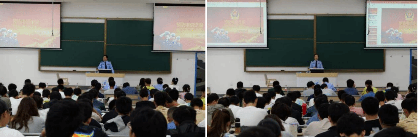 随后,碑林分局一级警长吕欣警官以“预防电信诈骗 绷紧防范之弦”为主题开展授课。吕警官聚焦学生群体高发的诈骗类型,结合真实案例深入剖析了刷单返利、校园贷、“两卡”犯罪等常见骗局的作案手法,用“接地气”的语言拆解诈骗分子的套路,同时详细讲解了“不轻信、不转账、不扫码、不透露”的识别防范技巧,为新生们送上了一堂干货满满的“反诈必修课”。