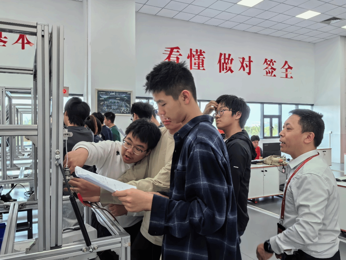 动手实操环节尤为关键。在海航技术培训教员的悉心指导下,学生们完成了“模拟飞行与应急实训”、“虚拟维修动手实操”、“车间研学观摩”等特色实践项目。通过亲自动手完成标准线路施工、打保险丝等关键实操项目,接触飞机的“神经”与“关节”,同学们深刻理解了航空维修中极致的安全标准与严谨的工艺要求。