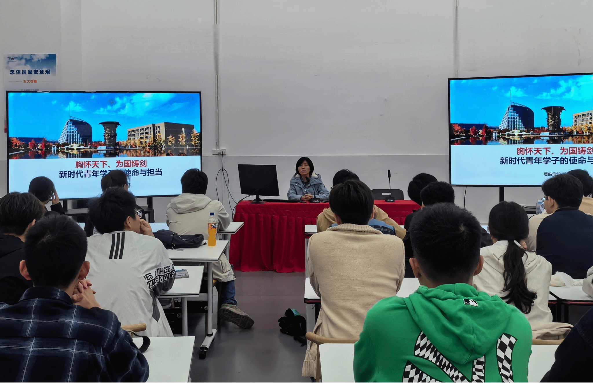 范晓丽院长以“胸怀天下、为国铸剑——新时代青年学子的使命与担当”为题,围绕世界变局与中国担当、总师摇篮与薪火相传、时代使命与期望嘱托,为同学们讲授了一堂深刻而生动的课程思政课。她立足全球格局,从世界变局下的行业规则与中国担当切入,强调莫航学子应善用学院独特的国际化平台与多文化环境,将外语学习转化为打破文化壁垒、开展全球协作的真实能力。她回顾西工大作为“总师摇篮”的办学历史与莫航学院的创办初心,指出学院始终致力于培养兼具国际视野与家国情怀的卓越人才。最后,她为青年成长指明方向。勉励同学们将个人理想熔铸于国家航空事业,成长为有格局、有本领、有担当的时代新人。