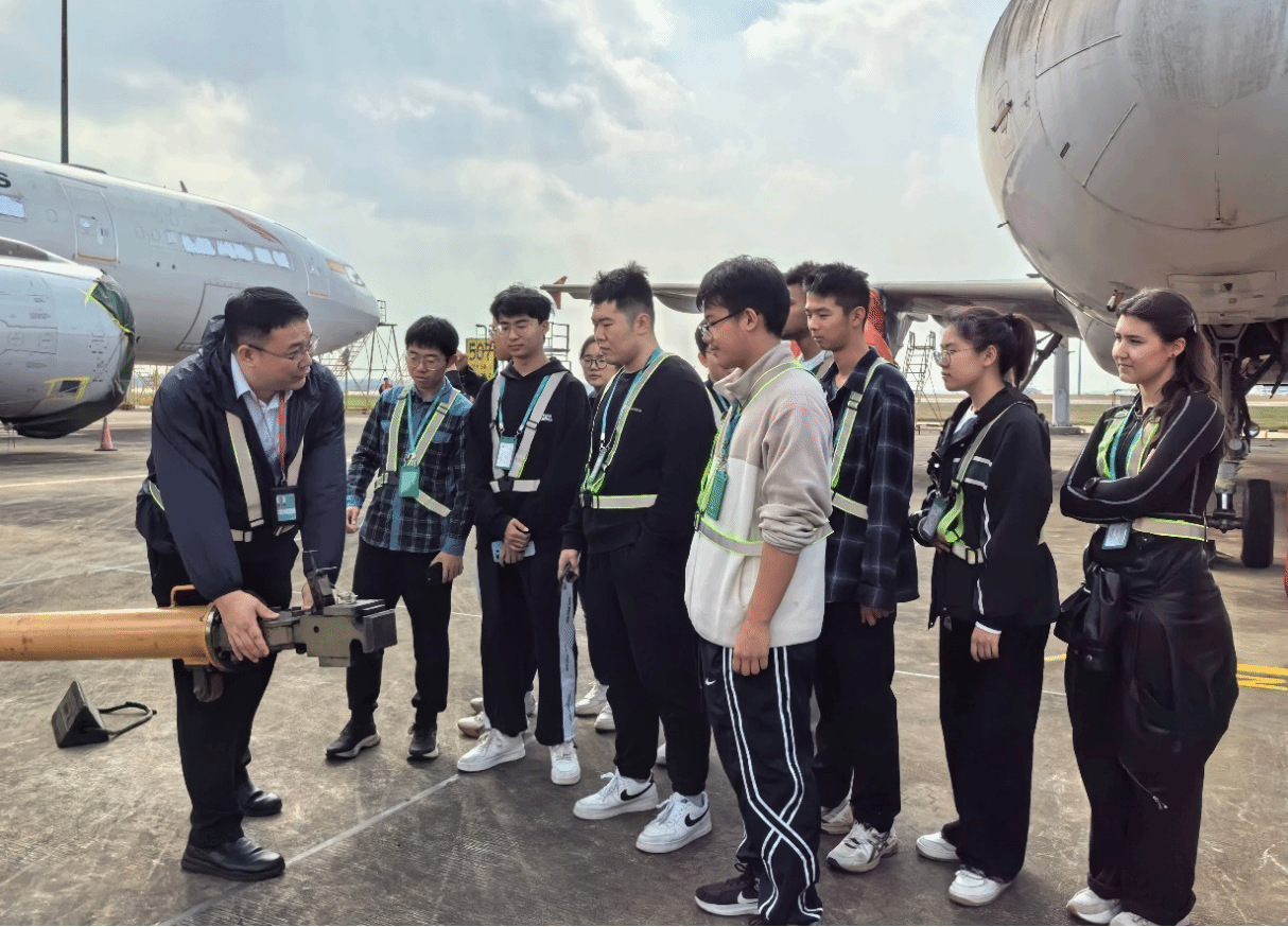实习核心在于深入了解产业一线。同学们先后进入机库、车间等进行实地学习,将理论知识与鲜活实物对照,建立了直观的工程认知。将课堂知识转化为实操能力,让学生们真正走进航空、触摸航空、理解航空。
