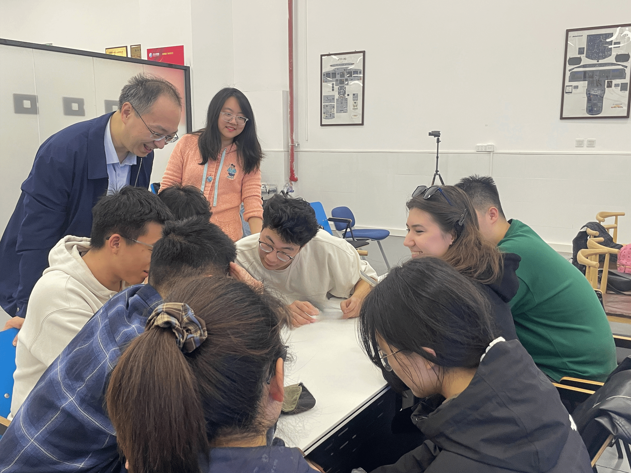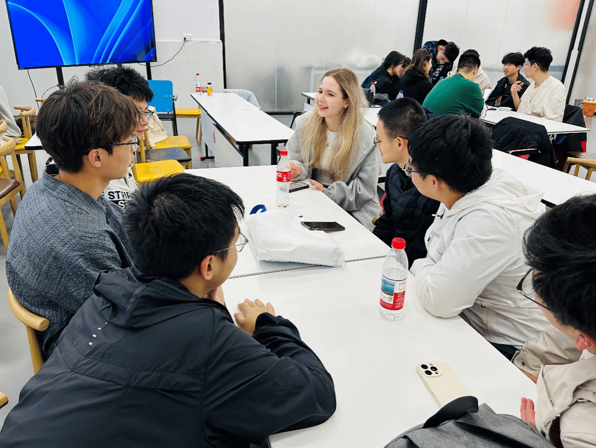 作为莫航学院极具辨识度的育人特色,俄语角活动贯穿实习全过程,实现“专业实践+语言学习”的深度融合,打破传统语言教学脱离场景的局限,深入多个与专业有关的实践场景。在车间对照保险丝、线路、维修工具等实物学习专业俄语术语,在进入机库后对照飞机起落架、发动机等核心部件的现场俄语研讨学习,课后以课程内容和实习见闻为主题开展俄语专题研讨。这种以真实工程任务为驱动、以实物为教具的语言实践模式,极大提升了俄语的专业应用能力与学习动力,强化了学院“专业+俄语”的融合培养特色。以小组为单位开展口语训练、词汇学习与语法实践,既夯实航空专业俄语基础,又提升跨文化交流能力,充分彰显莫航中俄联合办学、双语并行、国际融通的独特优势。