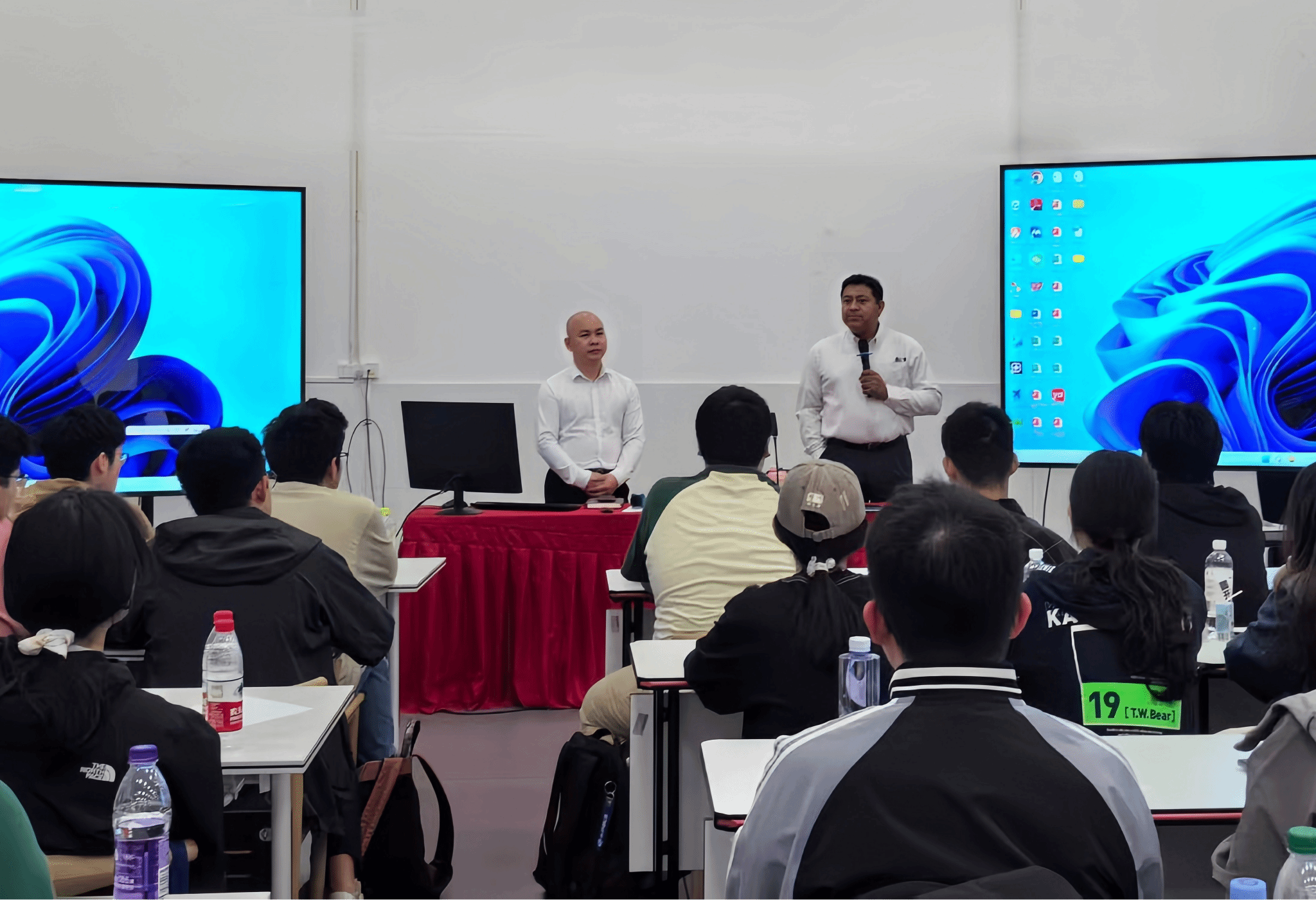 学院特邀专家举办专题讲座为全体学子筑牢思想根基与专业底色。西北工业大学校务委员会副主任万小朋教授以“大国重器、华夏之翼”为题带来专题讲座,立足国家航空航天发展大局,阐释航空事业的战略价值与青年使命;教学副院长王永欣围绕“复合材料与复合效应”开展学术分享,聚焦航空材料核心技术,将前沿理论与工程应用紧密结合,课程内容启思深远。期间,海航技术专家围绕复合材料修理介绍、航空涡轮发动机等核心课程开展系统教学,还组织学子参与空客、波音驻场代表专题分享交流会,搭建中外航空技术交流平台,让学生同步掌握国内标准与国际视野,构建了从理论到产业前沿的完整知识链条。