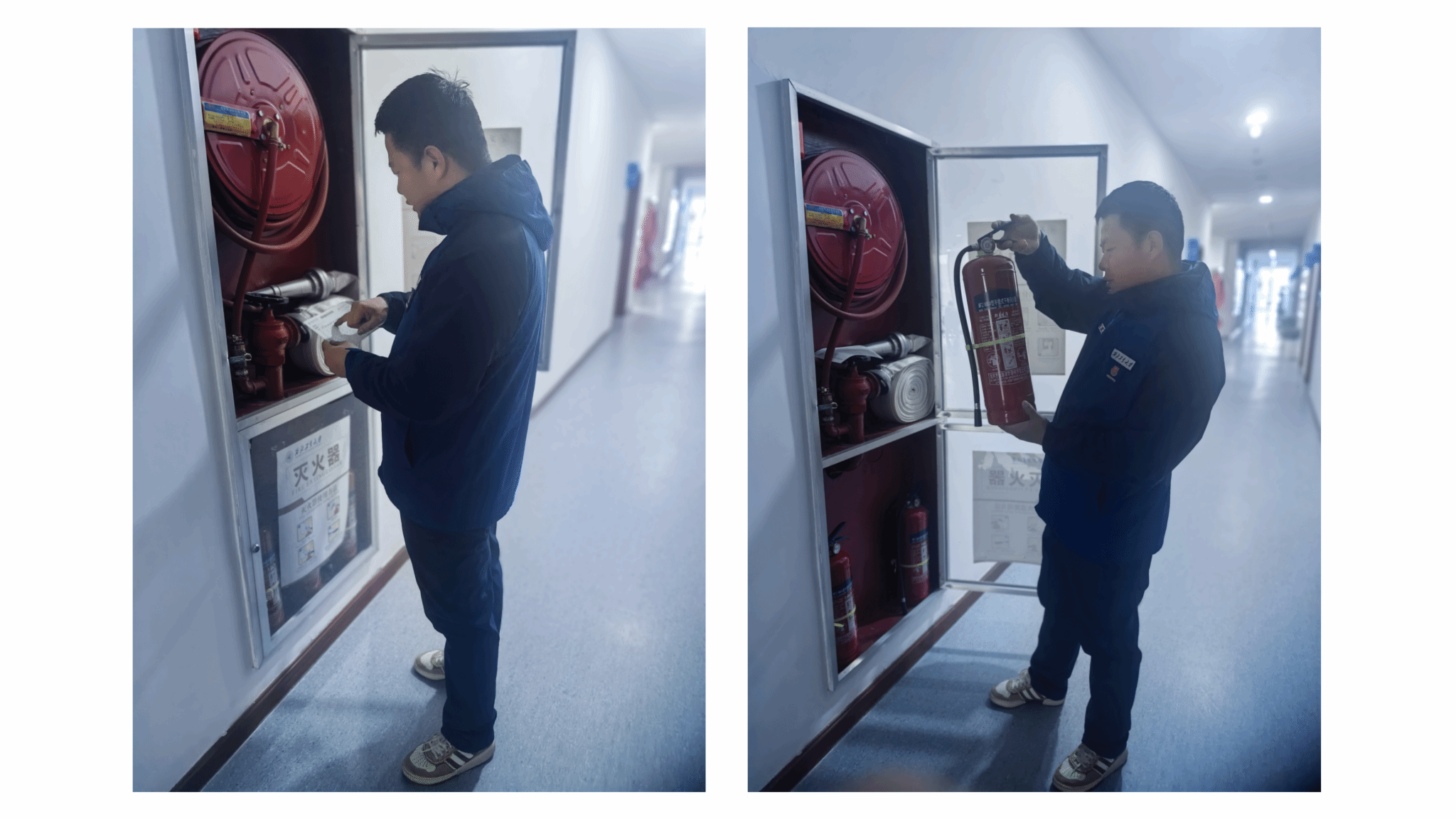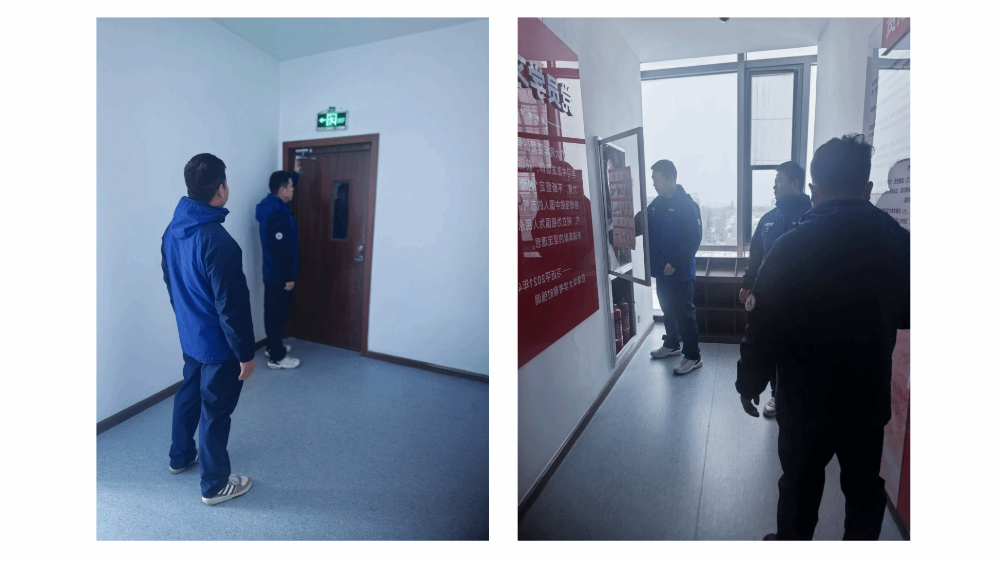 检查过程中,公安处人员与学院安全员一道,详细排查了各区域用水用电安全、物品规范摆放及防火防盗措施落实情况。 重点对灭火器、安全门、疏散通道等关键设施进行了逐一检测和现场测试,并就日常维护、正确使用及应急疏散要求给予了专业指导。