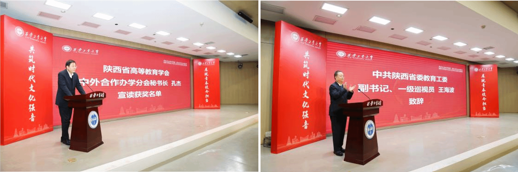 中共陕西省委教育工委副书记、一级巡视员王海波、陕西省高等教育学会中外合作办学分会秘书长孔杰出席本次比赛。